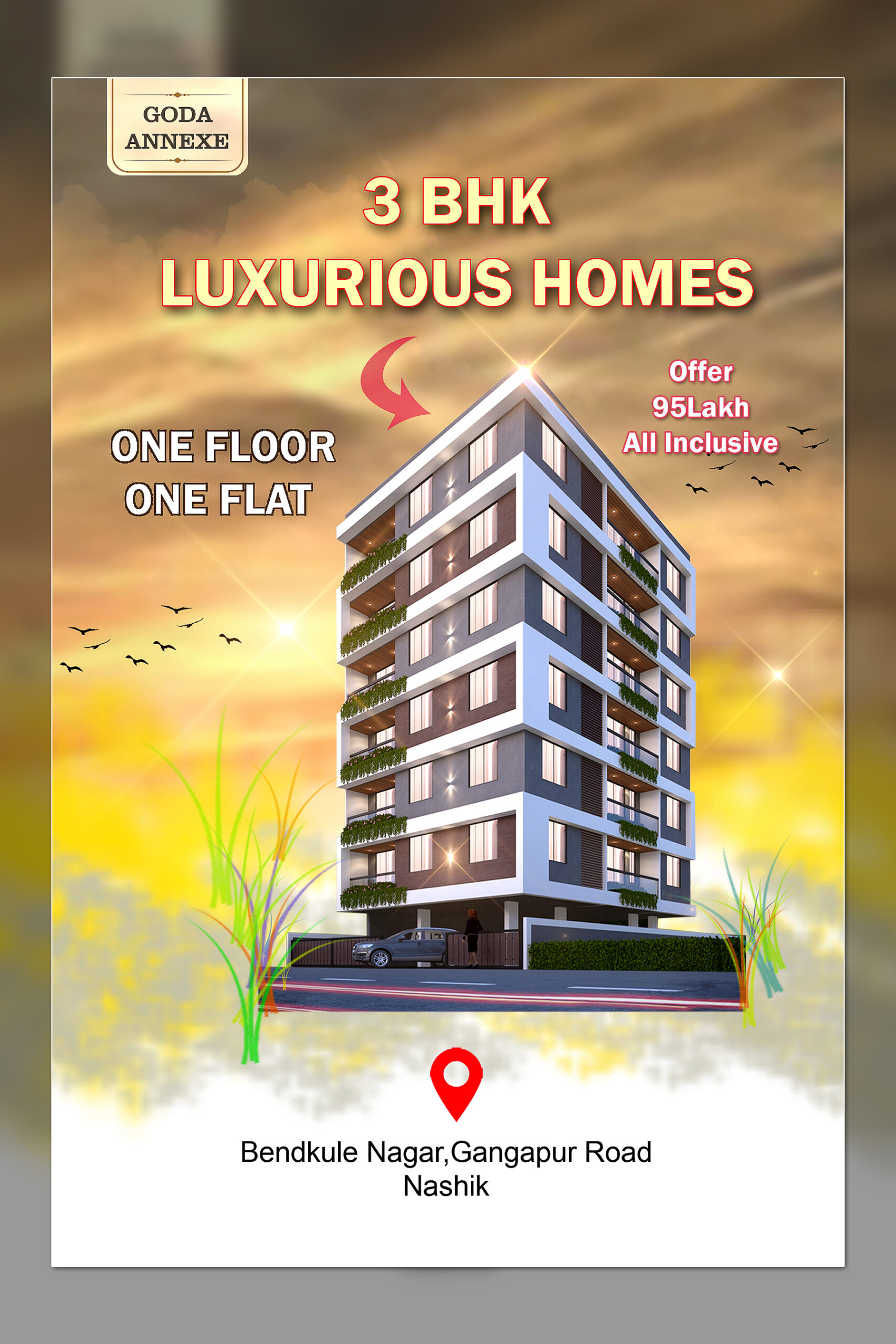 📍 3BHK 1Floor 1FLAT bedkule nagar seren midows, Gangapur Road Nashik